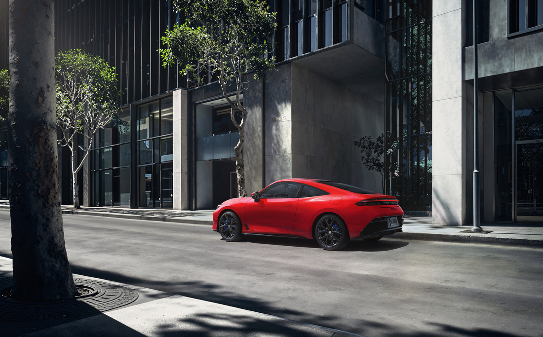 On the outside, the Prelude makes a bold statement. From its low, sharp nose to flared fenders and a distinctive “double-bubble” roof, every line is sculpted to convey motion — even when the car is standing still. Gloss-black 19″ aluminum-alloy wheels, wing-like LED daytime running lights, and flush door handles give the car an athletic, streamlined presence. The overall design blends aggressive coupe styling with aerodynamic intent, giving the Prelude a ready-to-drive look.